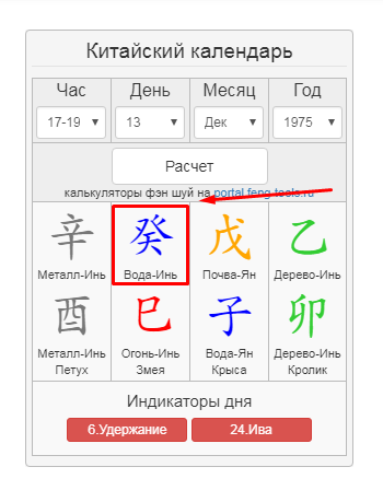 1. На странице Калькулятор введите в первый калькулятор Ваш час, день, месяц и год рождения. Затем нажмите кнопку "Расчет".