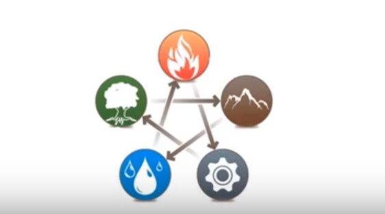 Дерево, к примеру, может являться топливом для стихии огня. В свою очередь огонь провзаимодействовав с деревом создаст золу, которая станет полезной для земли. Земля в итоге вернет металл, а руда образует росу, конденсат, а значит воду.